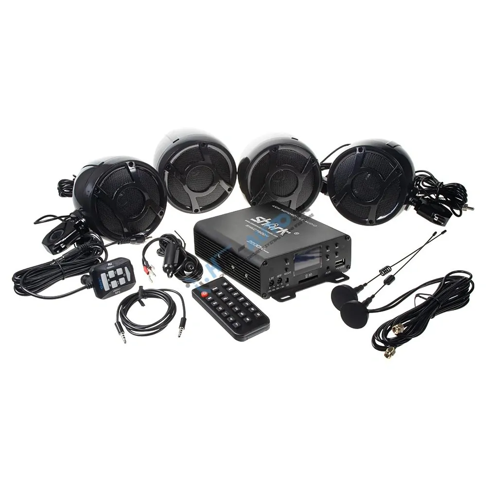 - 4.1CH zvukový systém na motocykel, skúter, ATV, loď s FM, USB, AUX, BT, čierne