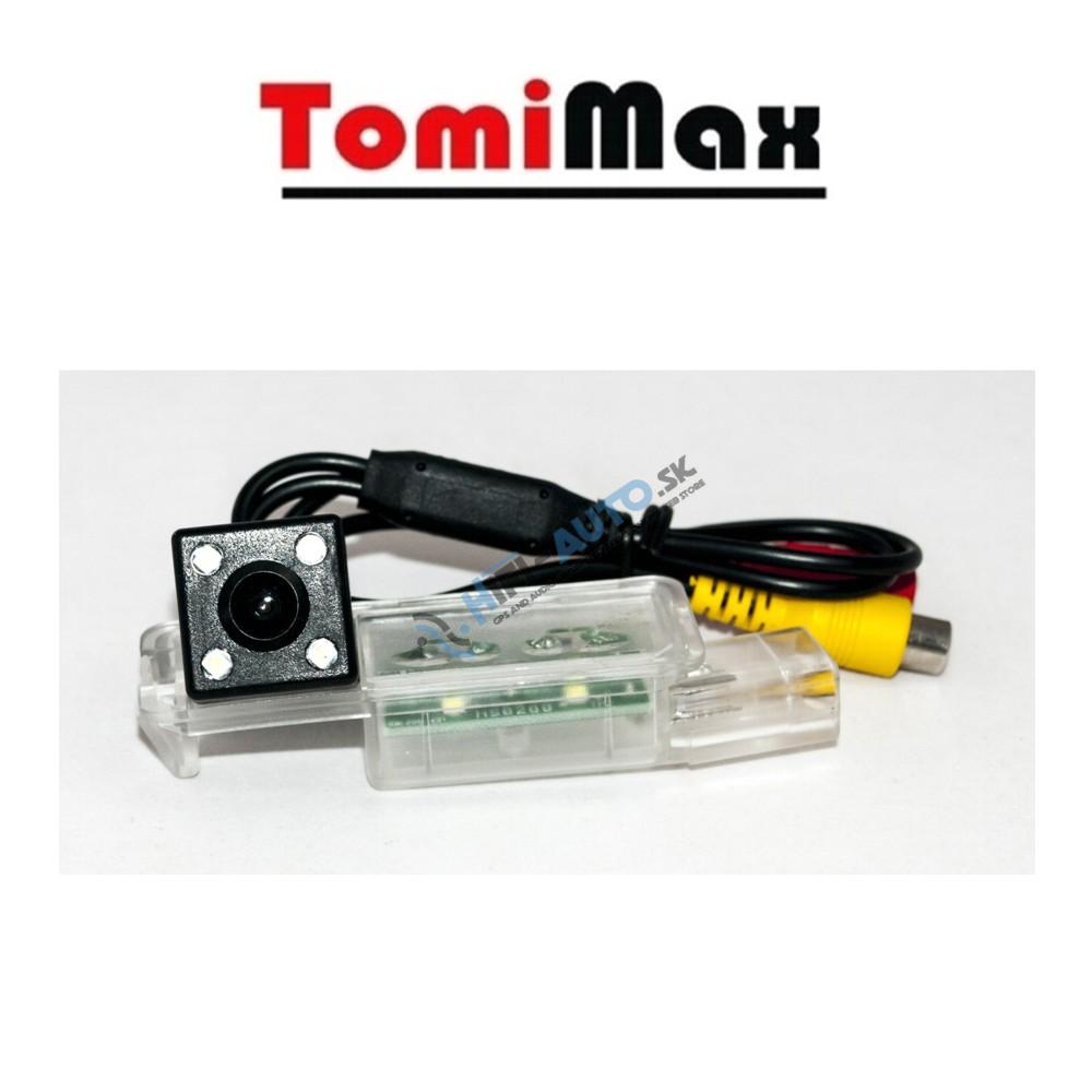 Farebná cúvacia kamera s LED osvetlením a IR (nočným videním) na nahradenie osvetlenia ŠPZ. Je určená pre zabudovanie do osvetlenia nad zadnú registračnú značku. Jednoducho sa vymení za pôvodné osvetlenie EVČ pričom naďalej spĺňa funkciu osvetlenia. Kamera zároveň zobrazuje pomocné trajektórie pre parkovanie. Výhodou kamery je zabudované nočné videnie. Pre originálny dizajn zapadne priamo na určený model automobilu. Disponuje veľkým 170° uhlom. Video signál z kamery je vyvedený na 6 m kábli s RCA koncovkami.Montáž: Vyberte 1 lampičku nad zadnou ŠPZ a miesto nej vložíte do originálneho otvoru túto kameru, ktorá zároveň nahradí pôvodné osvetlenie ŠPZ.