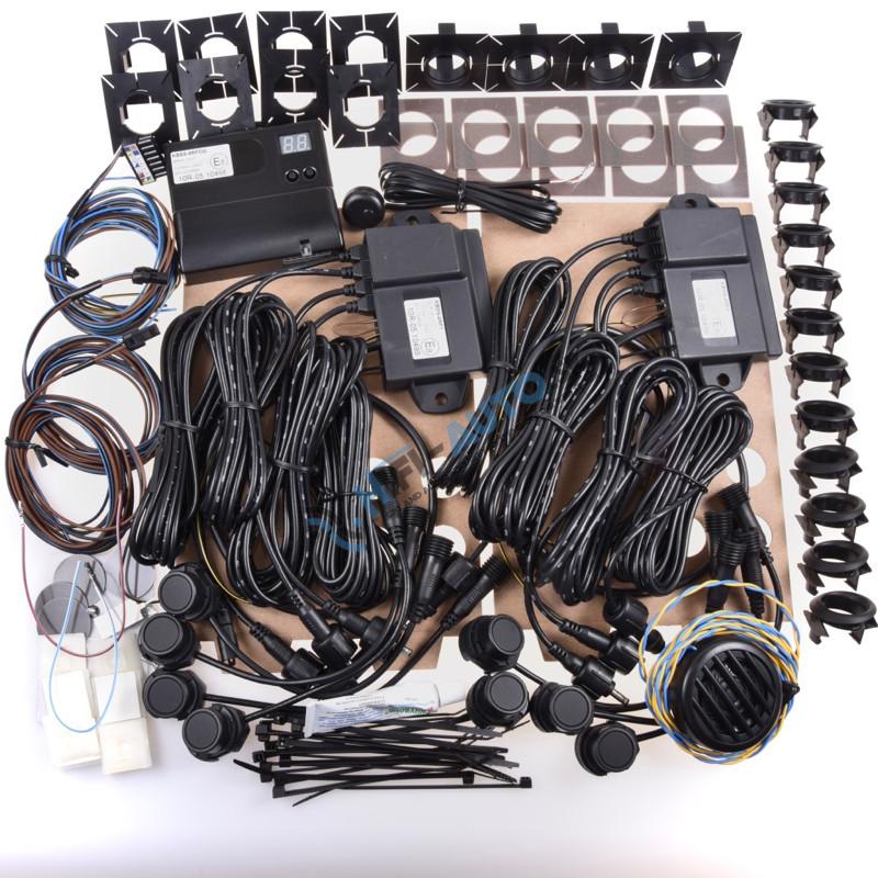 Bezdrôtová sada parkovacích čidiel – 8 senzorov , (4 zadné + 4 predné ). Hlavná riadiaca jednotka so servisným displejom a GPS modulom, 2x vodeodolná senzorová jednotka. Možnosť pripojiť 2x LED displej, alebo wifi modul pre nastavenie parametrov a zobrazenie prekážky na smartfóne . Hlavná riadiaca jednotka komunikuje bezdrôtovo so senzorovými jednotkami. Pri inštalácii nie je nutné preťahovať vodiče z motorového a batožinového priestoru pod prístrojovú dosku vozidla.