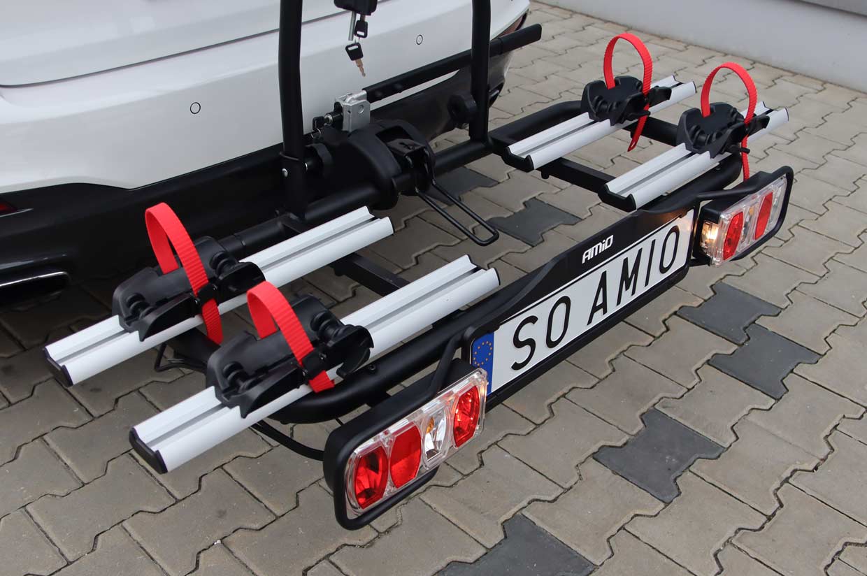 Veľmi pohodlný systém na pripevnenie bicyklov na nosič - stačí odopnúť upevňovacie prvky, prevliecť ich cez bicykle, zaistiť gombíkom s kľúčom a je to hotovo.