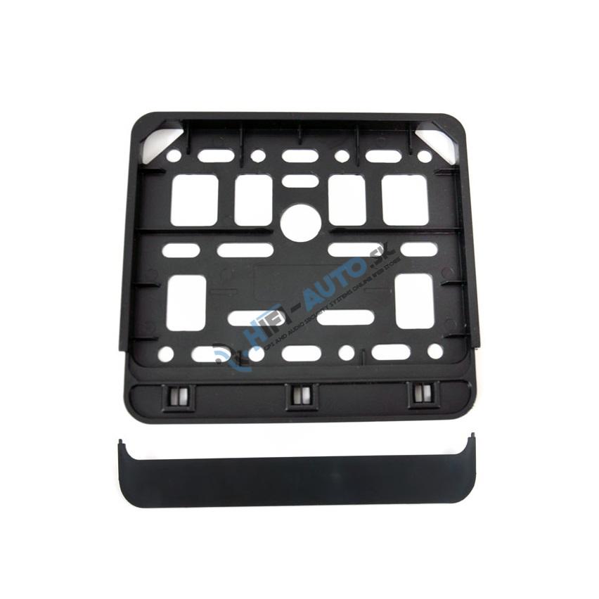 Podložka s pružného ohybného plastu pod štátnu poznávaciu značku alebo tabuľku registračnej značky, otvory pre univerzálnu montáž.