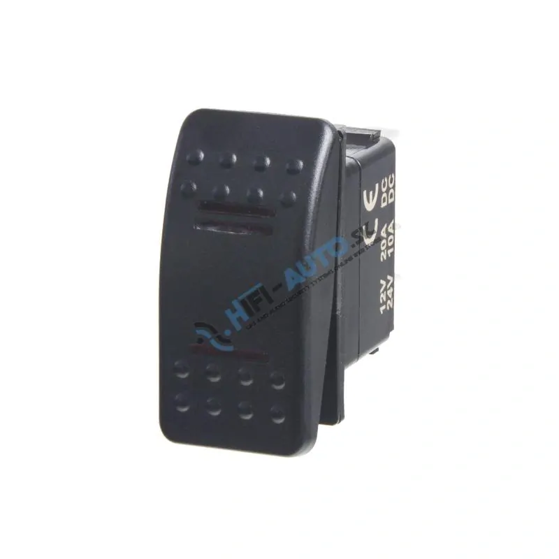 Spínač ROCKER kolískový hranatý s červenou LED kontrolkou, pre napájacie napätie 12 V / 20 A - 24 V / 10 A, rozmer otvoru 37 x 21 mm.