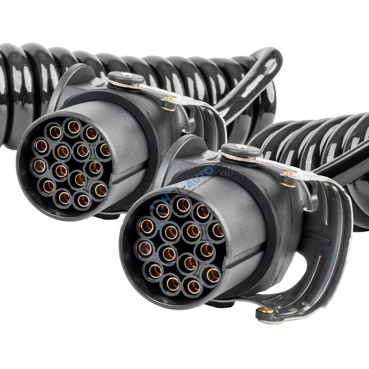 Profesionálny špirálový kábel s dvoma 15 PIN konektormi, určený pre 24V inštalácie. Poskytuje komplexné elektrické prepojenie medzi ťahačom a návesom – pre osvetlenie, ABS/EBS systémy a ďalšie zariadenia podľa normy DIN ISO 12098.