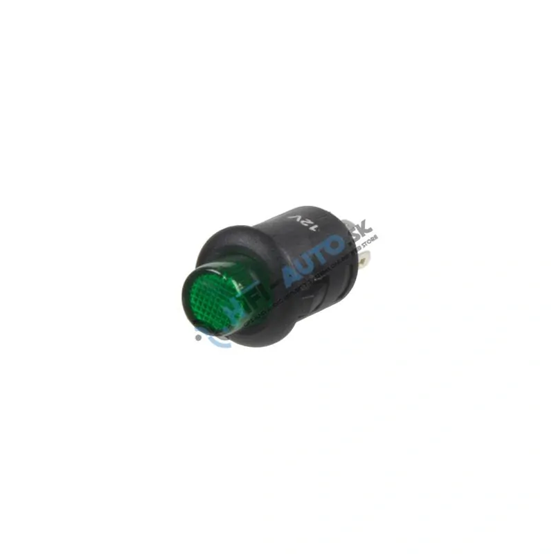 Tlačidlo guľaté 6 A, zelená LED kontrolka, priemer otvoru 12,1 mm, pre napájacie napätie 12 V.