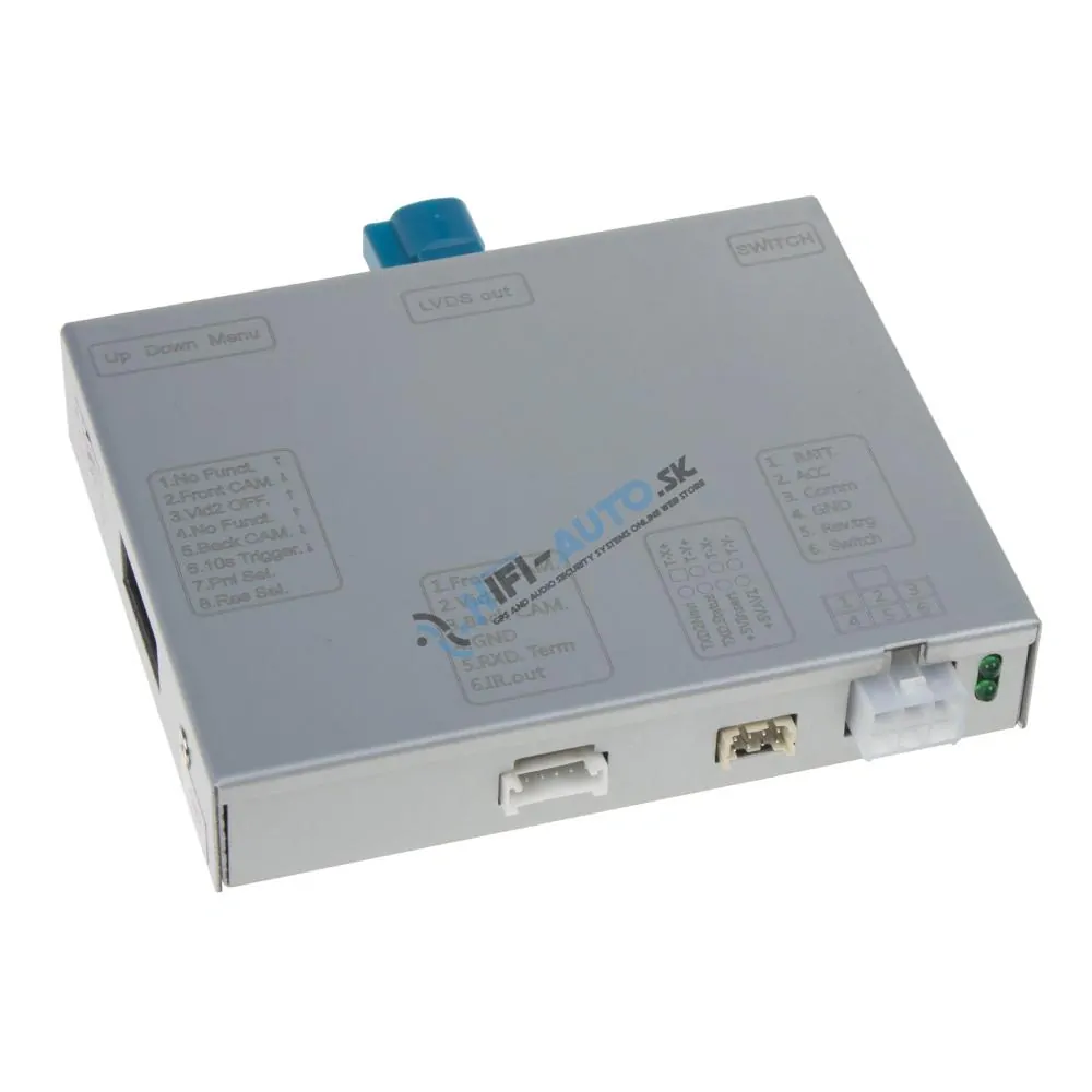 Modul je vybavený konektorom 4pin HSD LVDS pre napojenie k monitoru vozidla (4-pin okrúhly konektor). Prepínanie vstupov modulu sa vykonáva originálnymi tlačidlami na palubnej doske.